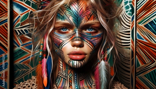 © PintaPali, Naklejka premium "Trazos Étnicos: Belleza Tribal"