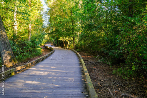 Obraz premium Treated Lumber Trail Through Summer Forest