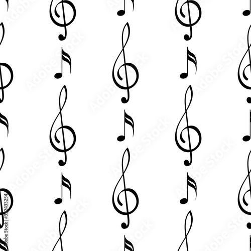 Fototapeta premium Treble clef and notes. Musical symbols as seamless pattern
