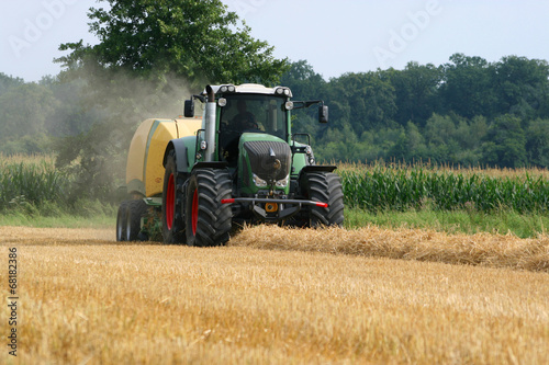 © nilapictures, Obraz premium Trecker mit Strohballenpresse