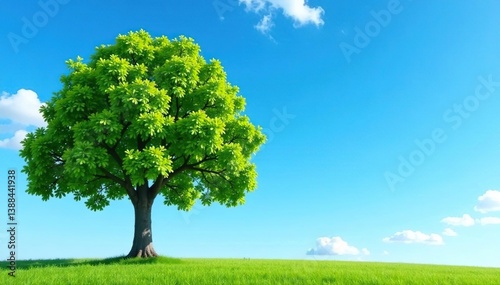 © Manit, Obraz premium Tree against a bright blue sky with a few wispy clouds, tree, atmosphere, nature