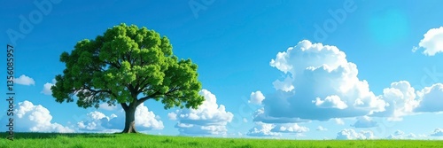 © Anulak, Obraz premium Tree against a bright blue sky with white clouds, landscape, branches, tree