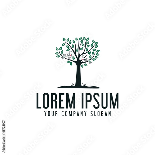 Obraz premium tree and bird logo design concept template