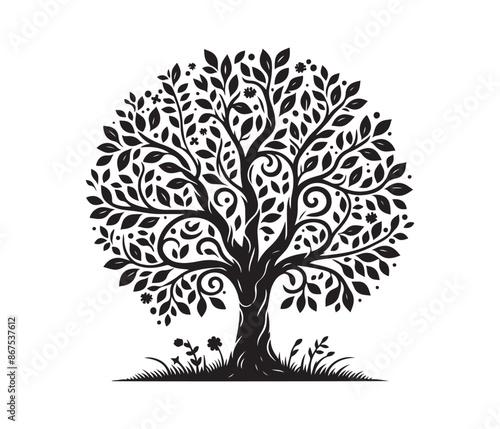© Graphic_Design, Fototapeta premium tree and christmas tree vector art graphic resources silhourtte vector style, white background
