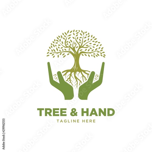 © SUPERGHONAM, Fototapeta premium Tree and hand symbol logo design vector template