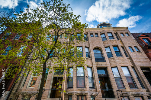 Fototapeta premium Tree and row houses in Mount Vernon, Baltimore, Maryland.