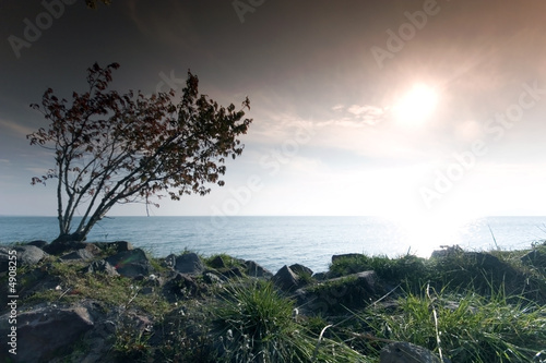 © Kavita, Obraz premium Tree and sunrise by the sea This phote make in Balaton(Hungary)