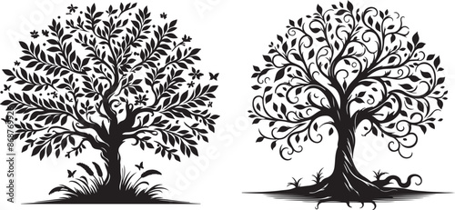 © TA graphic design, Obraz premium tree art silhouette vector art white background
