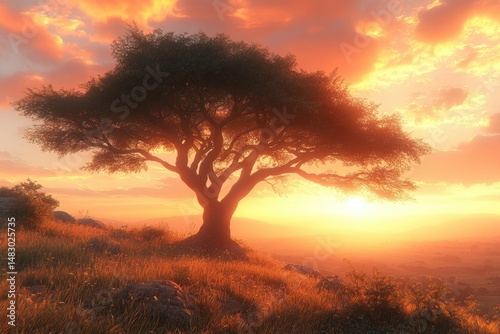 © AURA COLLECTIONS, Obraz premium Tree at sunset