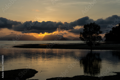 © greenphotoKK, Fototapeta premium Tree at the Beach at sunrise time, Phang Nga National Park