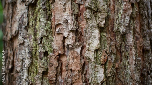 © pite, Obraz premium Tree Bark Close-up: Deep Grooves and Textural Variety - From Rough to Smooth Nature's Canvas