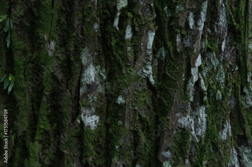 Obraz premium Tree bark covered in moss and lichen showing natural texture and forest beauty