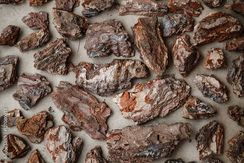 © vickyrandom, Obraz premium Tree bark pattern on the craft paper. Macro photo.
