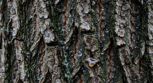 Obraz premium Tree Bark Texture with Water Droplets