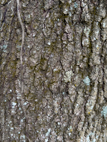 Fototapeta premium Tree bark with lichen and vine close-up