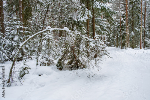© Lars Johansson, Fototapeta premium Tree bending by the snow in winter