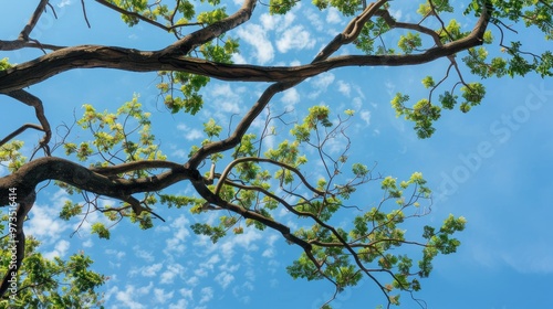 © ArtificialHorizons, Obraz premium Tree branch against blue sky
