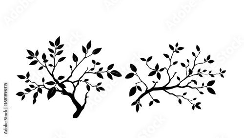 © Habibah, Naklejka premium tree branch silhouette isolated with cartoon vector illustration on transparent background