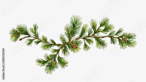 © Shehzad, Obraz premium tree branch with cones with wight background