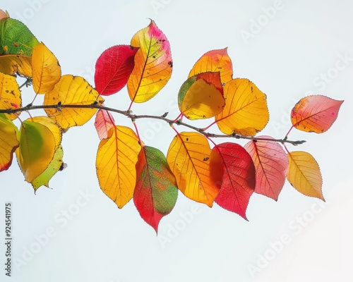 © Aidas, Obraz premium Tree branch with vibrant autumn leaves against clear sky
