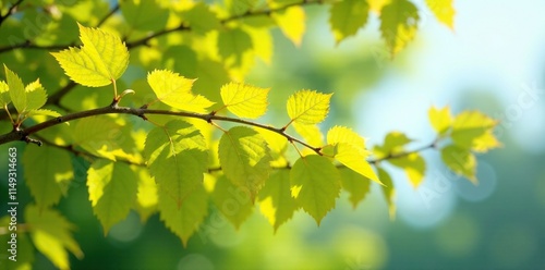© methinee, Obraz premium Tree branch with yellow leaves and green foliage, branch, summer