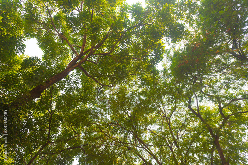 © ADSKrongsawat, Obraz premium Tree branches and leaves on sky with clouds background.