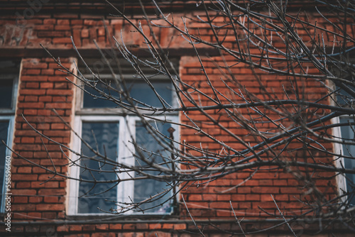 © David Khelashvili, Fototapeta premium Tree Branches By The Window In Winter