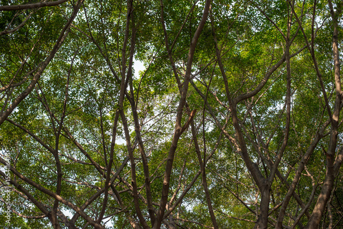 © yongyut, Obraz premium Tree branches in the forest. Nature background. View from below.
