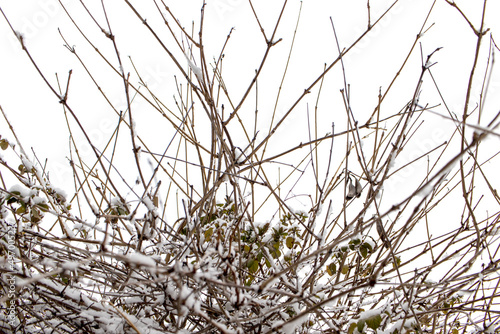 © Hatice, Fototapeta premium tree branches with snow on them. close-up.