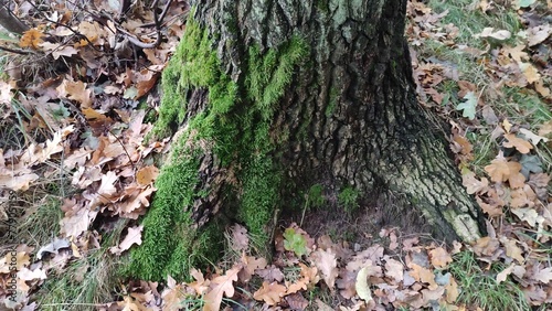 Fototapeta premium Tree covered with moss in the forest. Close-up