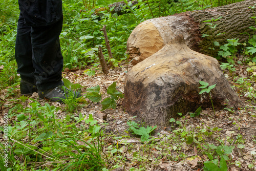 © MAXSHOT_PL, Obraz premium Tree Damage Caused by Beavers in Forest