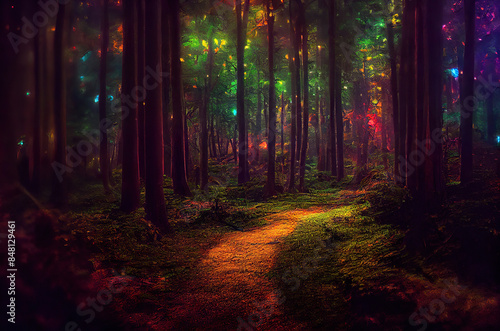 © design, Obraz premium 木, 森, 山, 道, 山道, 林, 植物, 草, 夜道, 夜, 光, tree, forest, mountain, path, mountain road, forest, plant, grass, night road, night, light