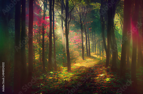 Naklejka premium 木, 森, 山, 道, 山道, 林, 植物, 草, 光, 曇り, かすみ, tree, forest, mountain, path, mountain...
