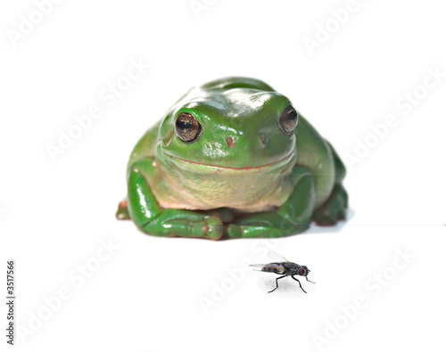 Fototapeta premium tree frog and fly