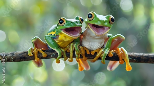 © Berkah, Naklejka premium Tree frog, flying frog laughing.