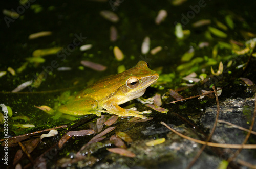Fototapeta premium tree frog is yellow body ,like plant color