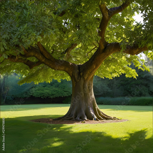 © Sync, Naklejka premium Tree garden park with sky background, realistic tree with green leaf stand alone with beautiful light in day time