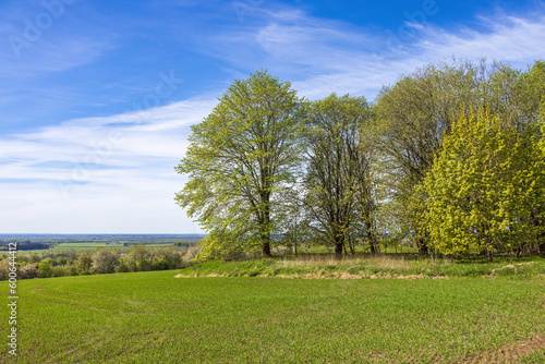 © Lars Johansson, Obraz premium Tree grove with lush green trees by a field