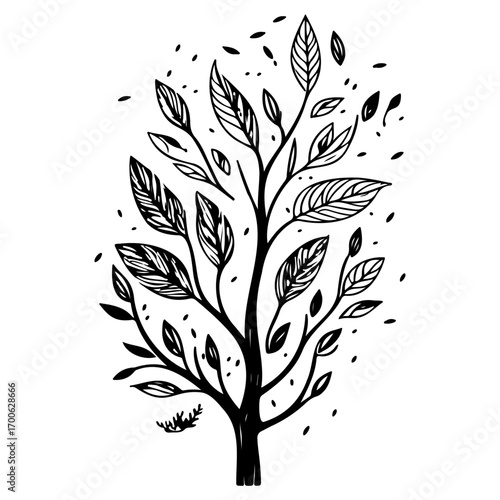 Fototapeta premium tree half spring autumn floral illustration sketch draw