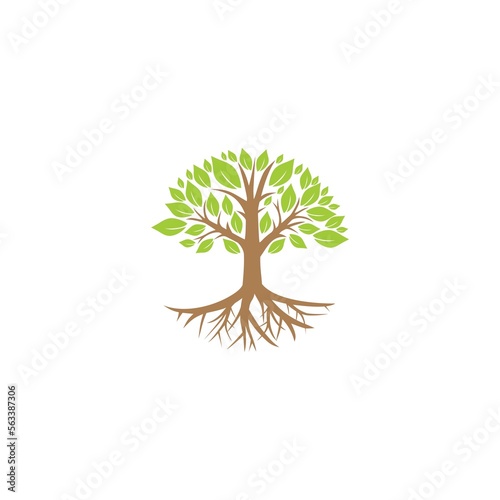 © sljubisa, Obraz premium Tree icon concept. Tree root design illustration isolated on white background