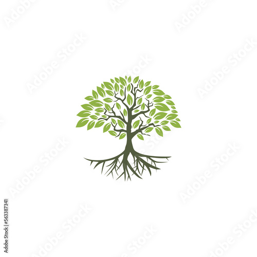 © sljubisa, Obraz premium Tree icon concept. Tree root design illustration isolated on white background
