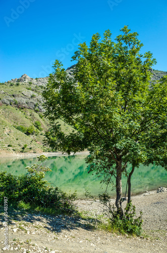 Fototapeta premium Tree in a mountain lake, Zelenogorie
