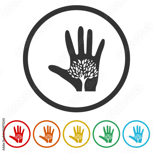 Obraz premium Tree in hand ring icon color set