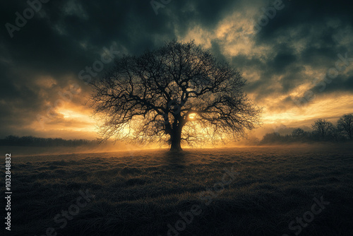 © AlexandraDaryl, Fototapeta premium Tree in the field generative AI