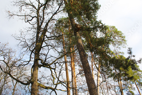 © Iryna, Obraz premium tree in the forest, tree branches with blue sky background, beautiful view of nature scene