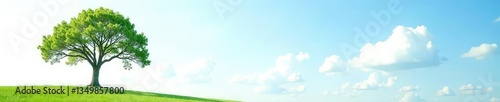 © Jame, Fototapeta premium Tree in white background against clear blue sky with fluffy clouds, landscape, isolated