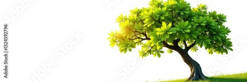 Fototapeta premium tree isolated on white background with sunlight filtered through its leaves, nature, leaves
