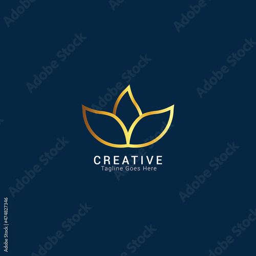 © Muhammad Muhdi, Fototapeta premium Tree leaf vector logo design, golden leaf outline concept