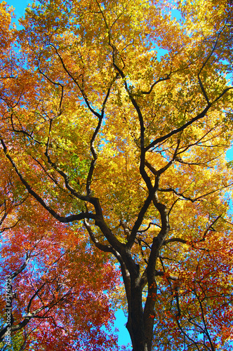 © jessicakirsh, Fototapeta premium Tree leaves changing colors during the fall season