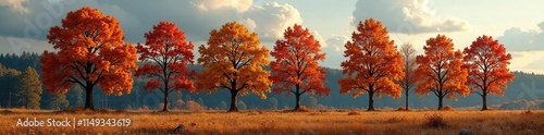 © Withun, Naklejka premium tree line with bare branches and autumn colors, tree line, rustic landscape